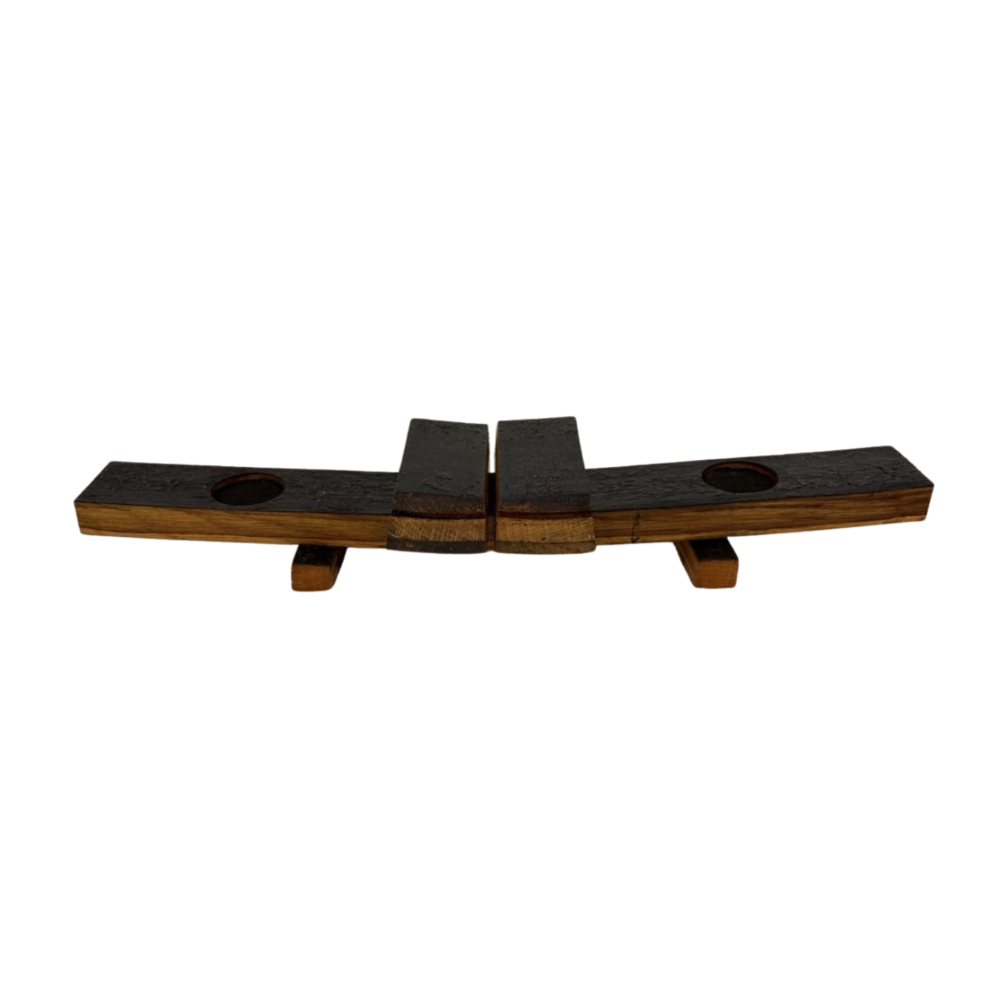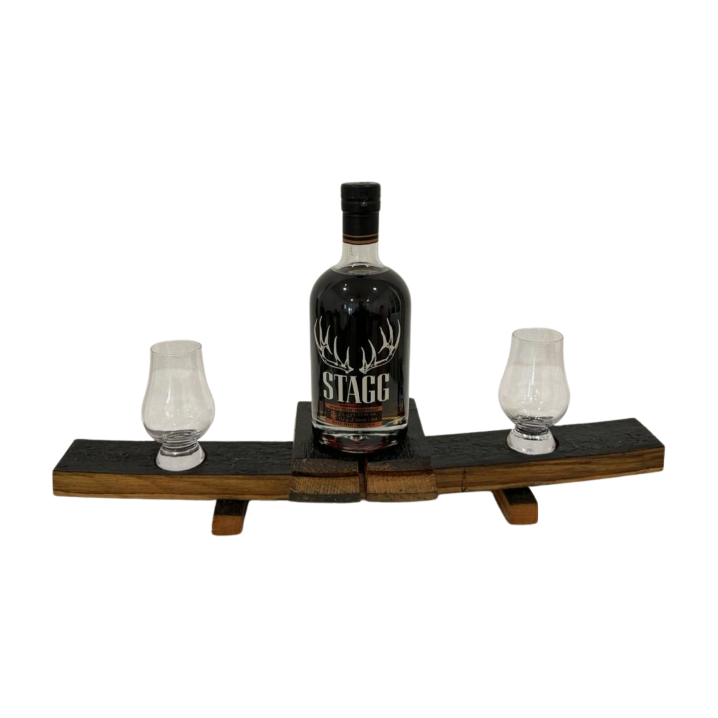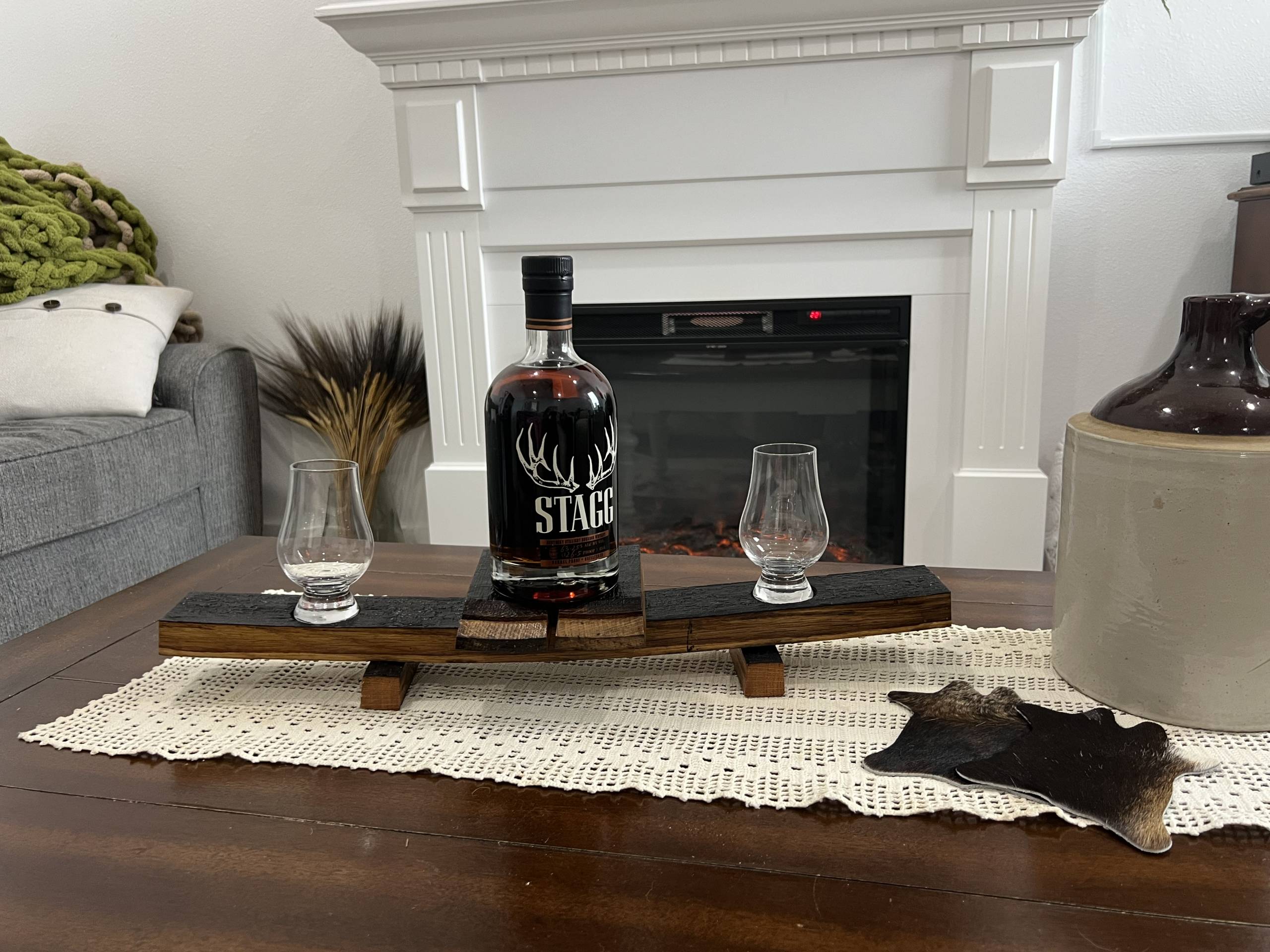 Feature Presentation is unapologetically centered, designed to draw the eye and command attention without excess. Its clean lines and intentional spacing reflect Roy’s belief that restraint is often the most powerful design choice. Built from reclaimed materials, it elevates a single bottle into a focal point worthy of its story. This piece feels deliberate, like a pause before the first sip. Nothing here is accidental.